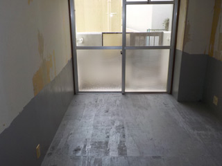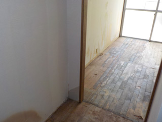 家財撤去後に、床と壁紙を撤去しましたが、アンモニアが下の素材まで浸み込んでいた事から、床と壁の約1mまで防臭ペンキを塗布いたしました。