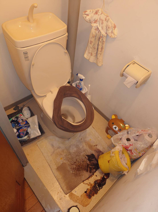 今回の特殊清掃の案件は、この部屋にお独り住まいだったお母さまがトイレで亡くなられたので、その娘様であるご姉妹が依頼をされた案件でした。