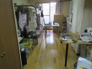 お部屋は床一面にゴミが散乱し、机の上には本類が積み重なっていました。