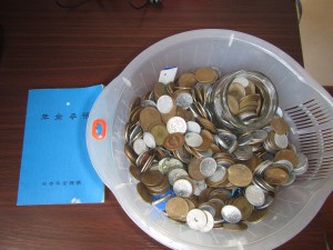 清掃中にはザルいっぱいの小銭と年金手帳も見つかりました。