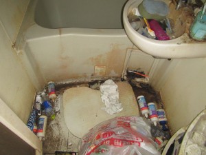浴室内にあったペットボトルが詰まったゴミ袋を撤去し、まずはスペースを確保。