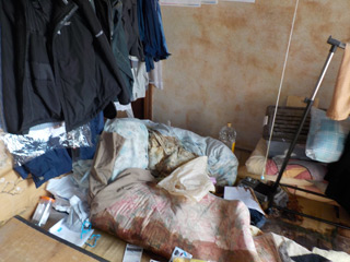 お布団が裏返っておりますが、布団の上で亡くなられたので、布団は脂肪で汚れ酷く重くなっておりました。