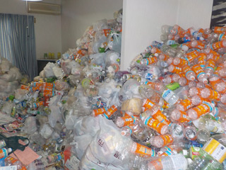 ペットボトルが多く、全部で14立米もありましたが、中身がほとんど残っておらず、この点はスムースに作業が進みました。