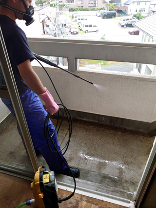 今回の特殊清掃は、以前空室の部屋の中にハトが入り込んだ部屋の特殊清掃をご依頼いただいた管理会社様より、同じ大家様の別の部屋のベランダにハトが居り、ベランダの清掃と防鳥ネット設置のご依頼でした。